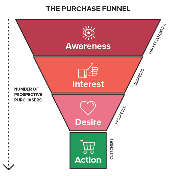 Converting potential customers into paying subscribers requires pre-planning and a good marketing strategy. To be successful, you need to optimize your conversion funnel and user journey. Conversion funnels apply to all online sales-focused businesses and outline the journey a potential customer will take before they commit to purchase. In it’s simplest form, the conversion funnel has four main steps that we’ve outlined below.